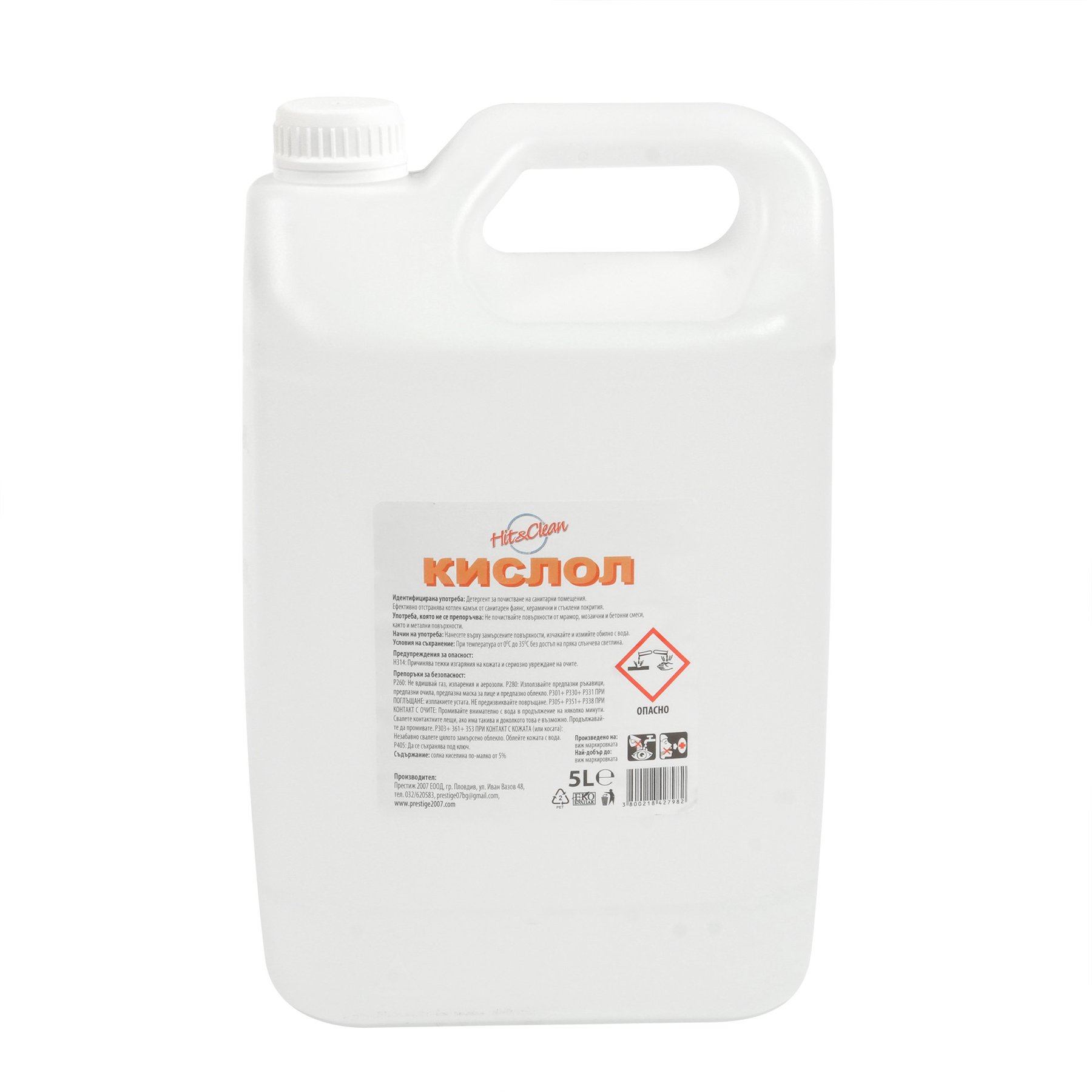 Кислолът е силно концентриран почистващ препарат на киселинна основа, предназначен за премахване на упорити замърсявания, варовик и ръжда. Идеален за почистване на санитарни помещения, бани, тоалетни, басейни и други повърхности, устойчиви на киселини. Осигурява ефективно и бързо действие.Обем: 5 L.