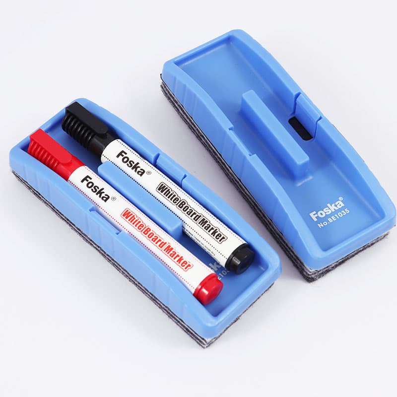 Практична и многофункционална гъба за почистване на бяла дъска, подходяща за училища, офиси, конферентни зали и домашна употреба. Гъбата ефективно премахва следите от маркери за сухо триене, без да надрасква повърхността и без да оставя остатъци.Благодарение на вградената поставка, върху гъбата могат удобно да се поставят маркери за бяла дъска, което осигурява по-добра организация и бърз достъп по време на писане и изтриване.
