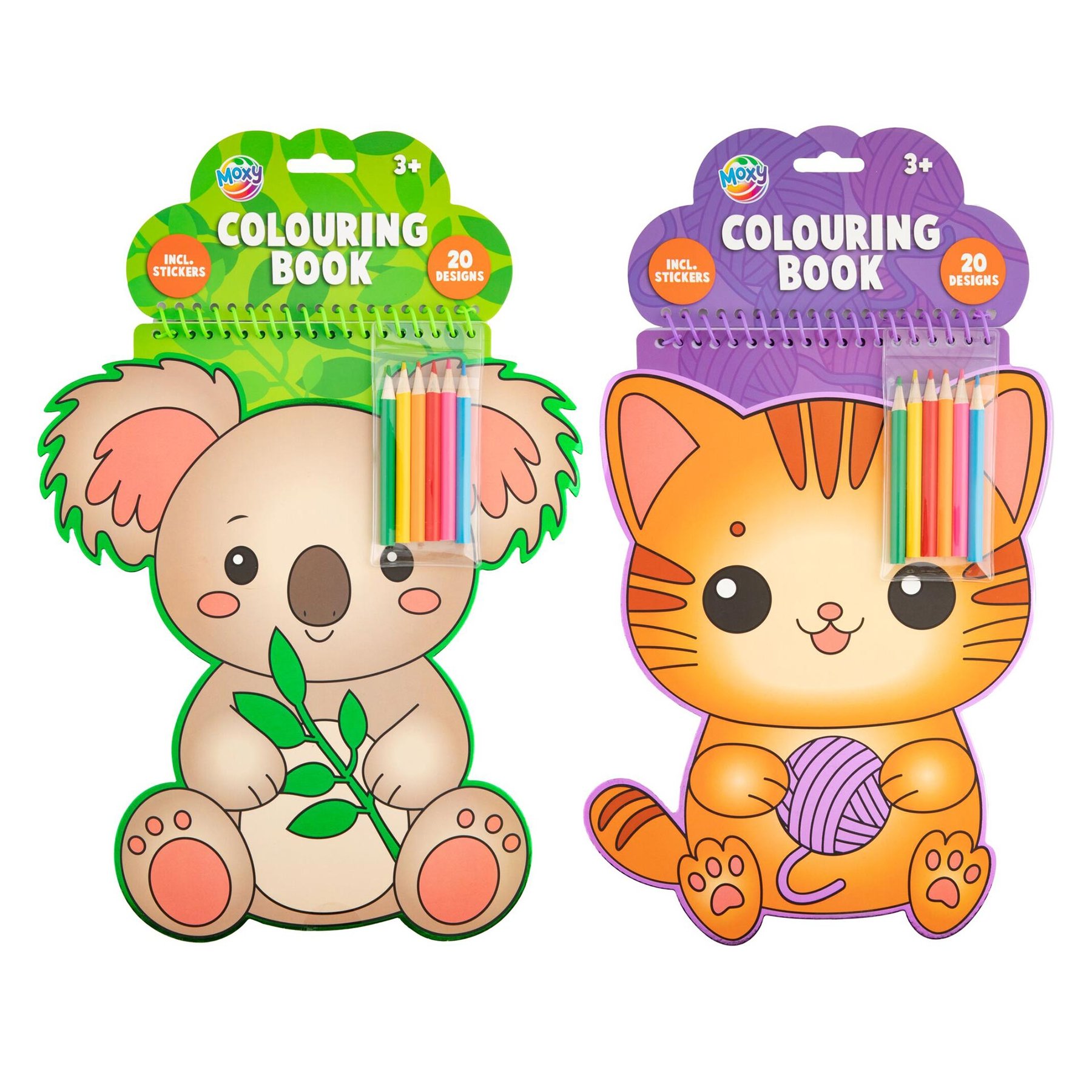 Подарете на децата часове творческо забавление с този чудесен комплект от две книжки за оцветяване с уникални форми – сладка коала и игриво котенце!Всяка книжка съдържа 20 забавни дизайна за оцветяване, които малчуганите могат да оцветяват и украсяват по свой вкус.Комплектът включва общо 12 цветни молива (по 6 към всяка книжка), за да може малчуганите веднага да започнат да творят. Благодарение на удобното спирално подвързване книжките се разгръщат лесно и са подходящи както за у дома, така и за път.Подходящи за деца над 3 години, тези книжки подпомагат развитието на въображението, фината моторика и чувството за цвят и форма.