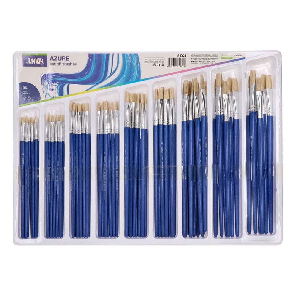 Съдържание: 96 четки (№ 0, 2, 4, 6, 8, 10, 12 – по 12 броя; № 14, 16 – по 6 броя).
