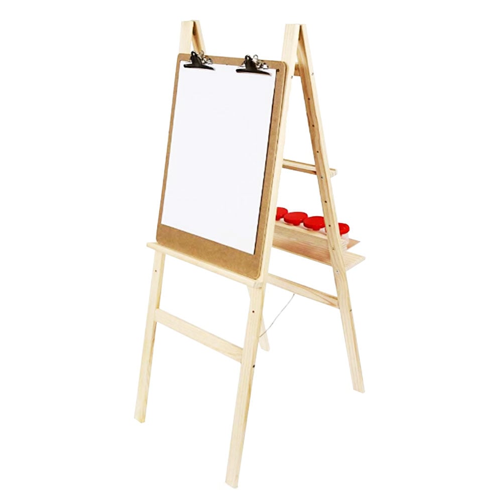 Компактен двоен статив за рисуване от борово дърво с рафт за задържане на кутии с боя.С включена инструкция за монтаж.Размери: 134 х 58 сm.
