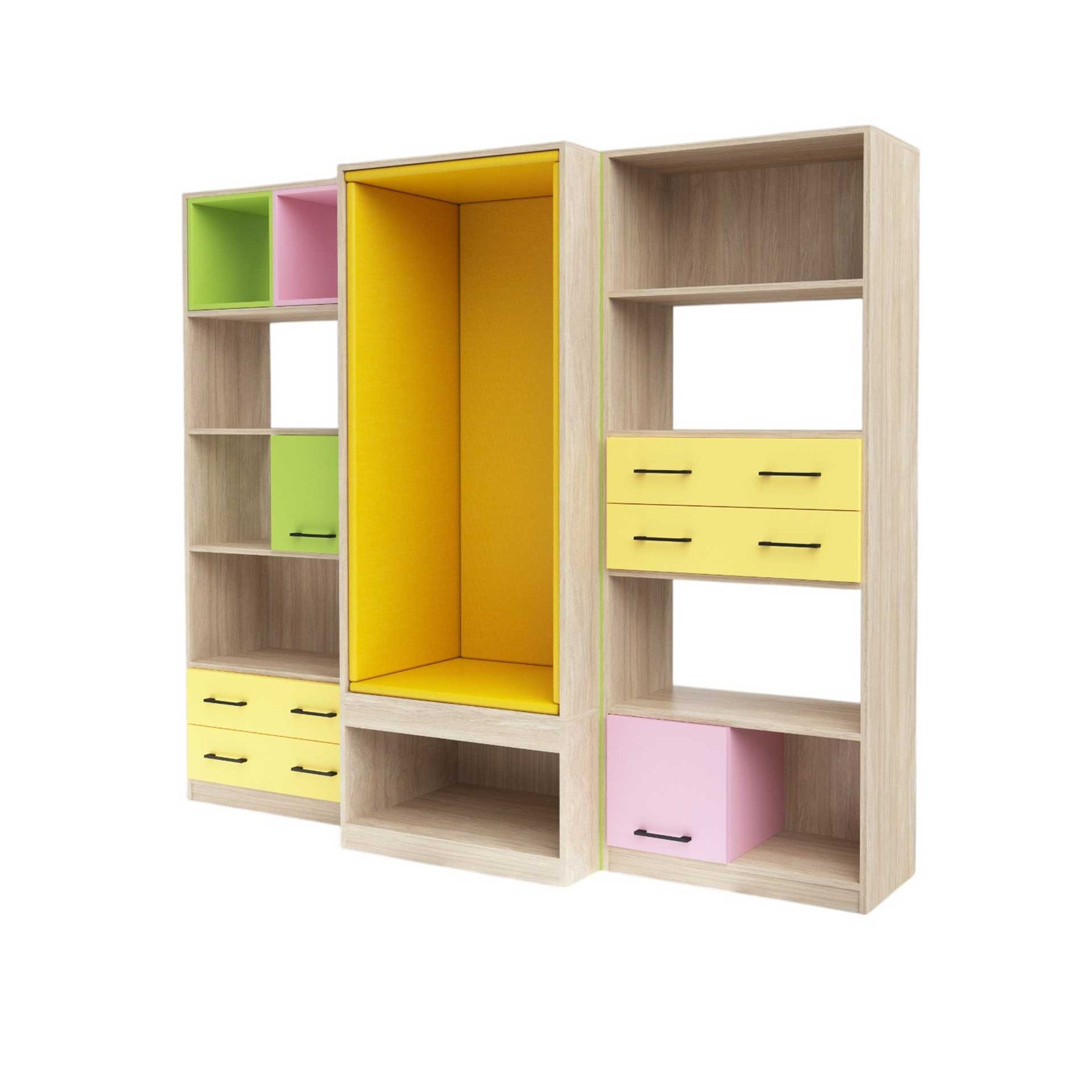 Модулна композиция, подходяща за обзавеждане на офиси, училища и обществени сгради.Изработена от 18 mm ПДЧ.